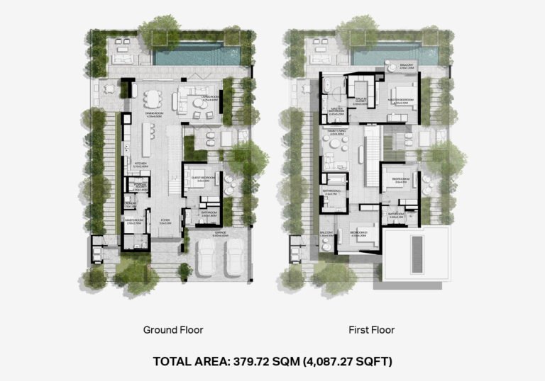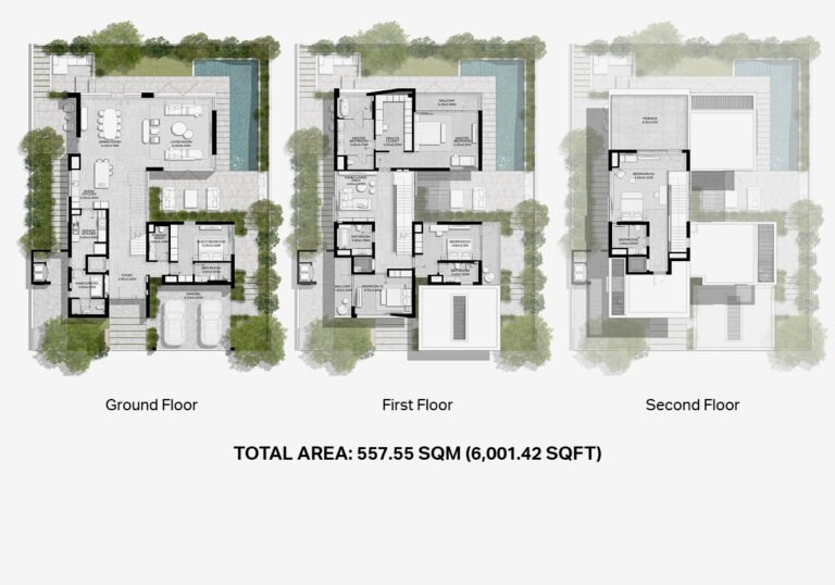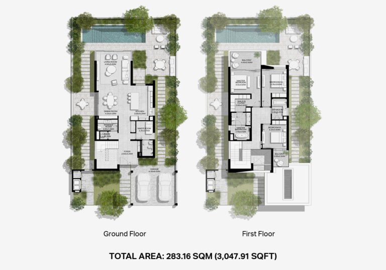 The Acres community in Dubailand, Dubai, offers both standalone villas and the more luxurious Acres Estates, both developed by Meraas. The Acres features villas with 3-5 bedrooms and open-plan layouts, while the Acres Estates are 5-7 bedroom villas in the Ivory and Amber Collections. Both feature amenities like private pools, gardens, and are situated within a nature-focused community with green spaces and swimmable lagoons.